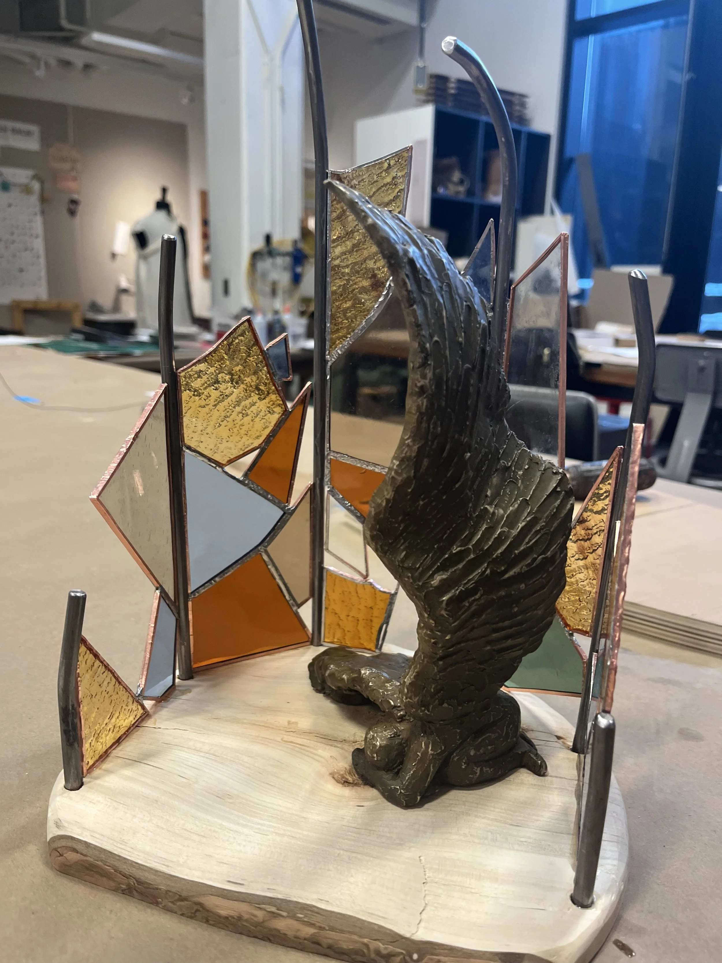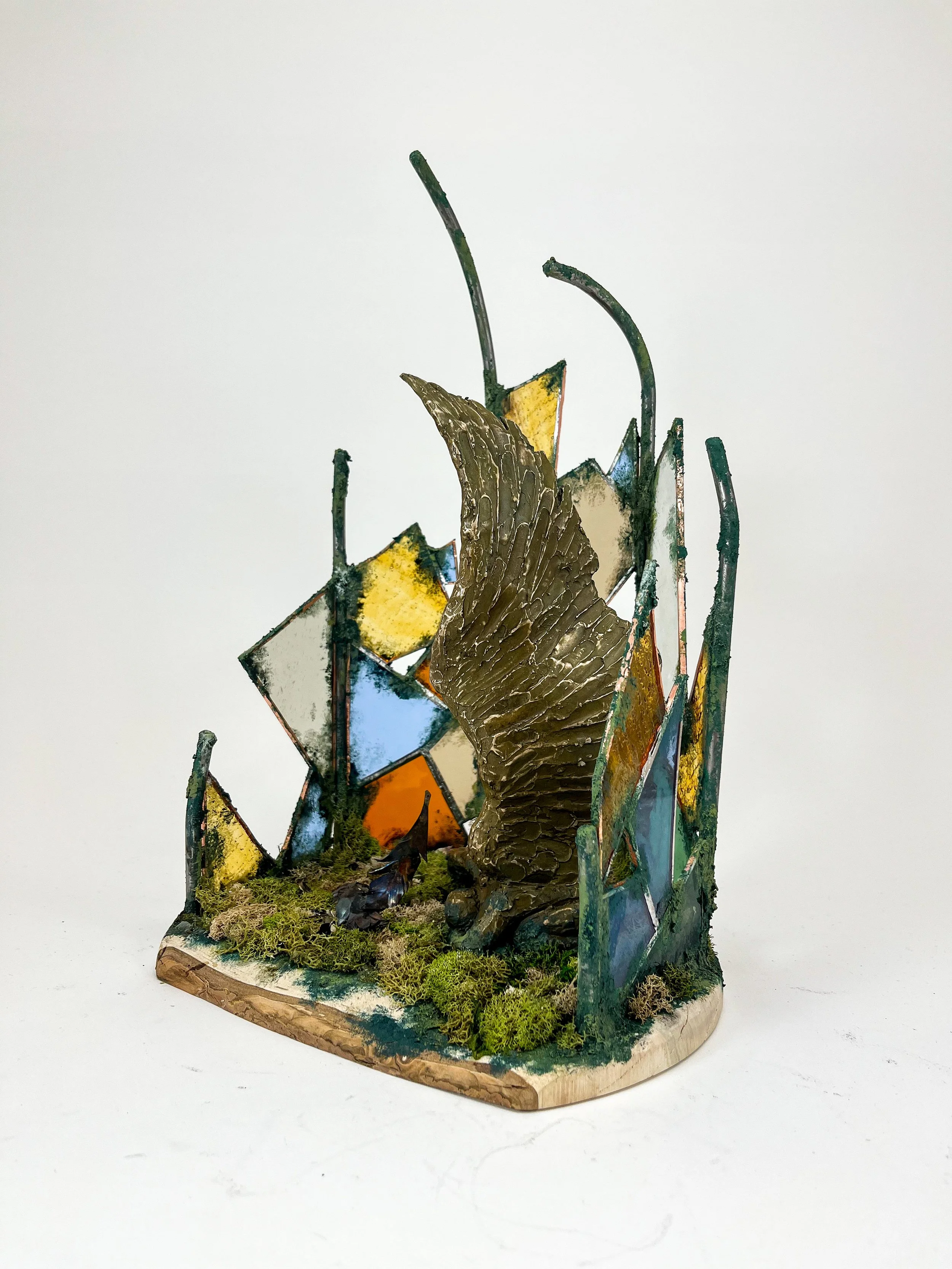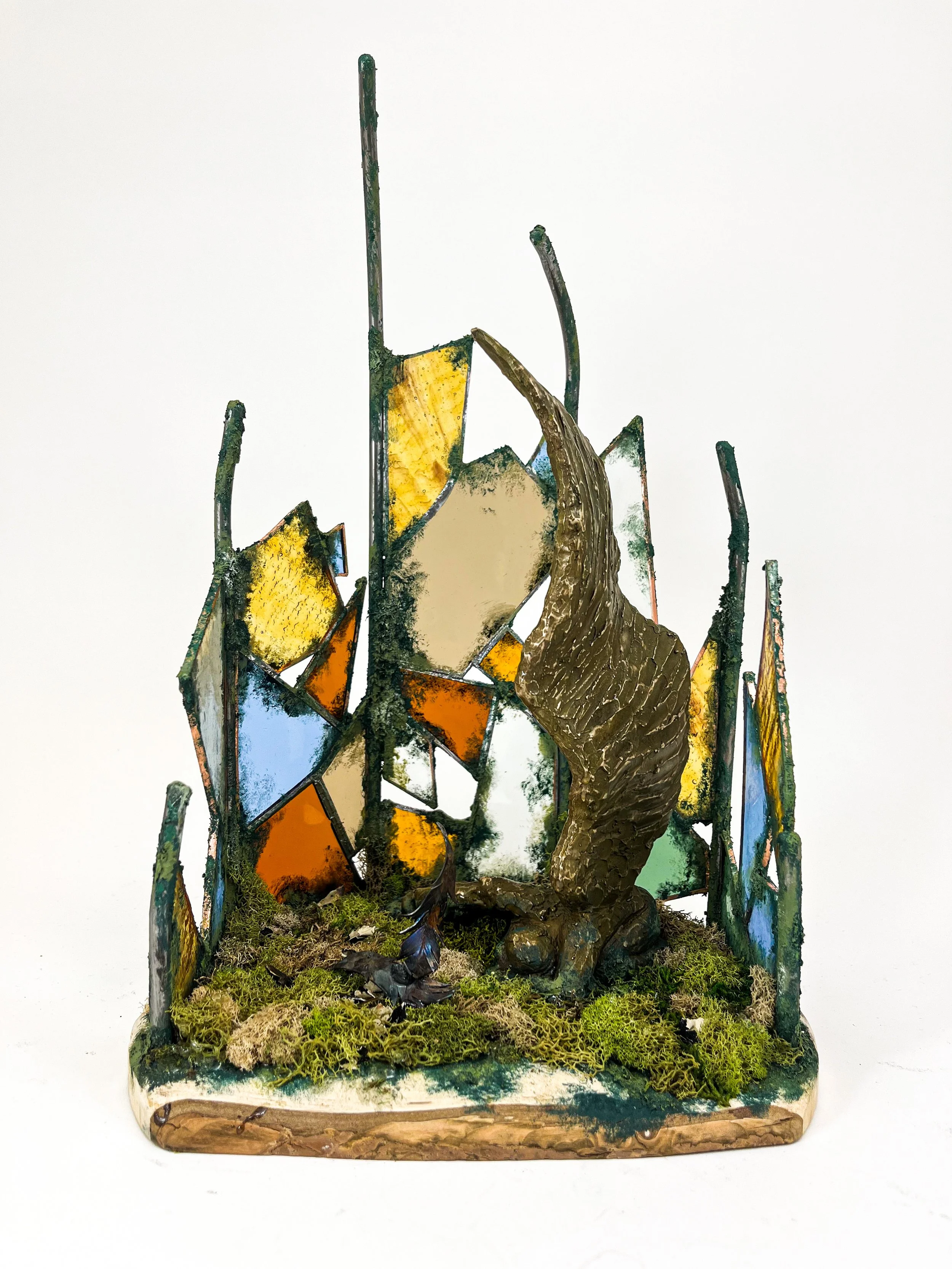 Materials: Bronze, sheet metal, wood, glass, epoxy, moss