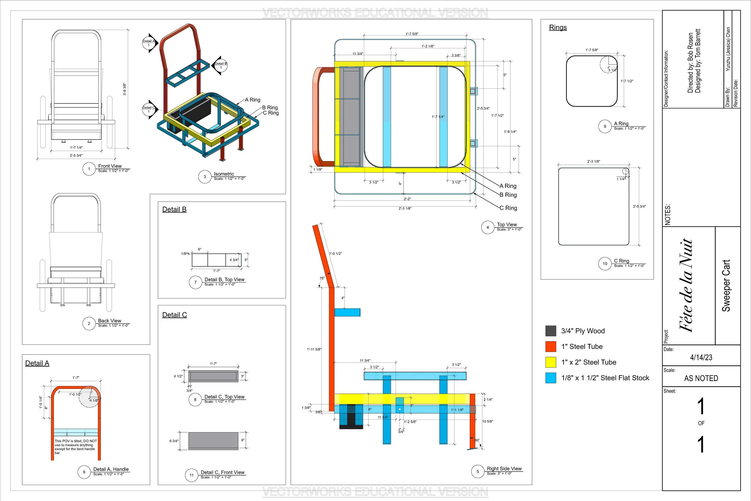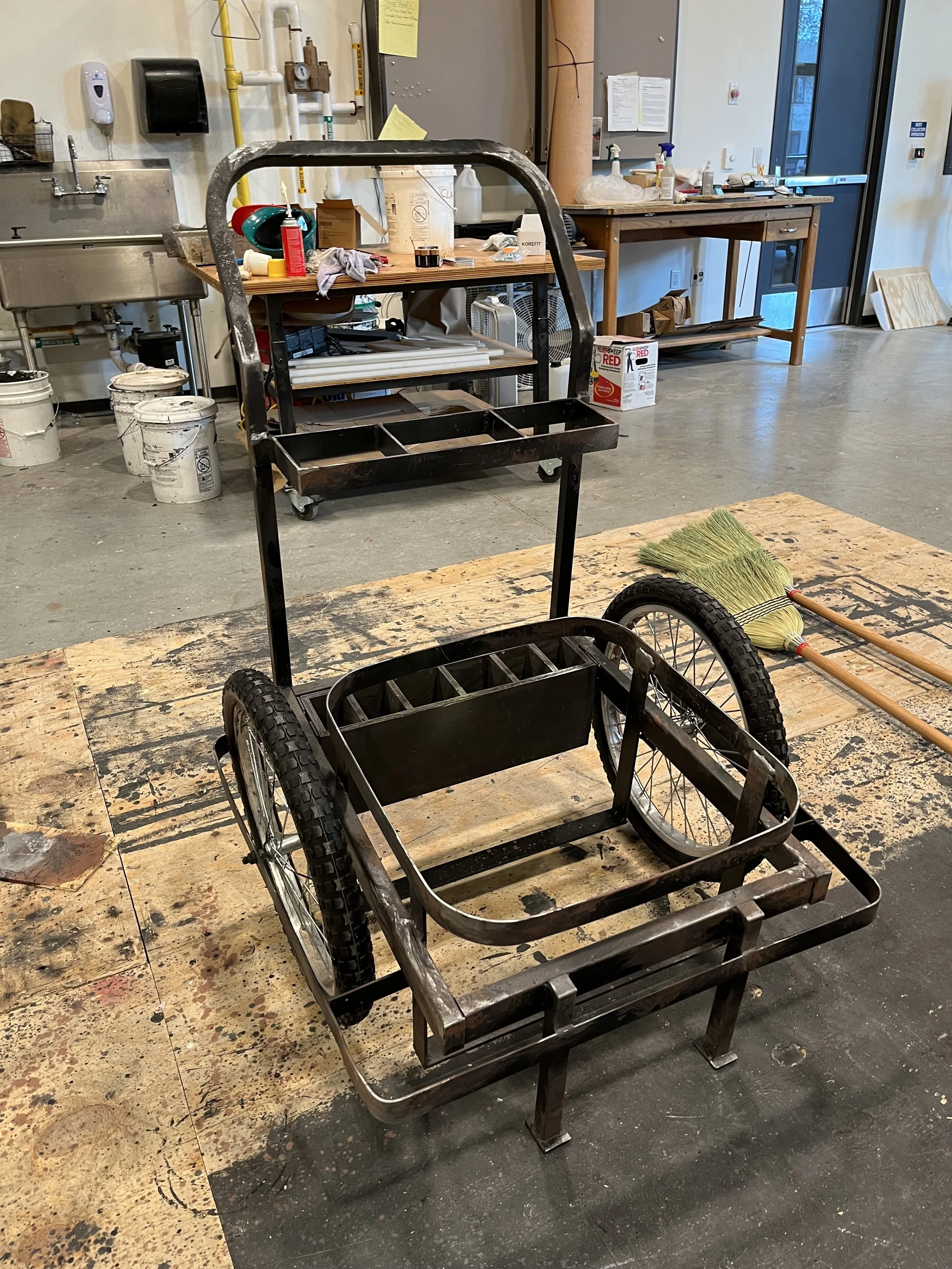 The cart is designed and drafted by me and fabricated in the scene shop. I also applied the painting and weathering to add textures.