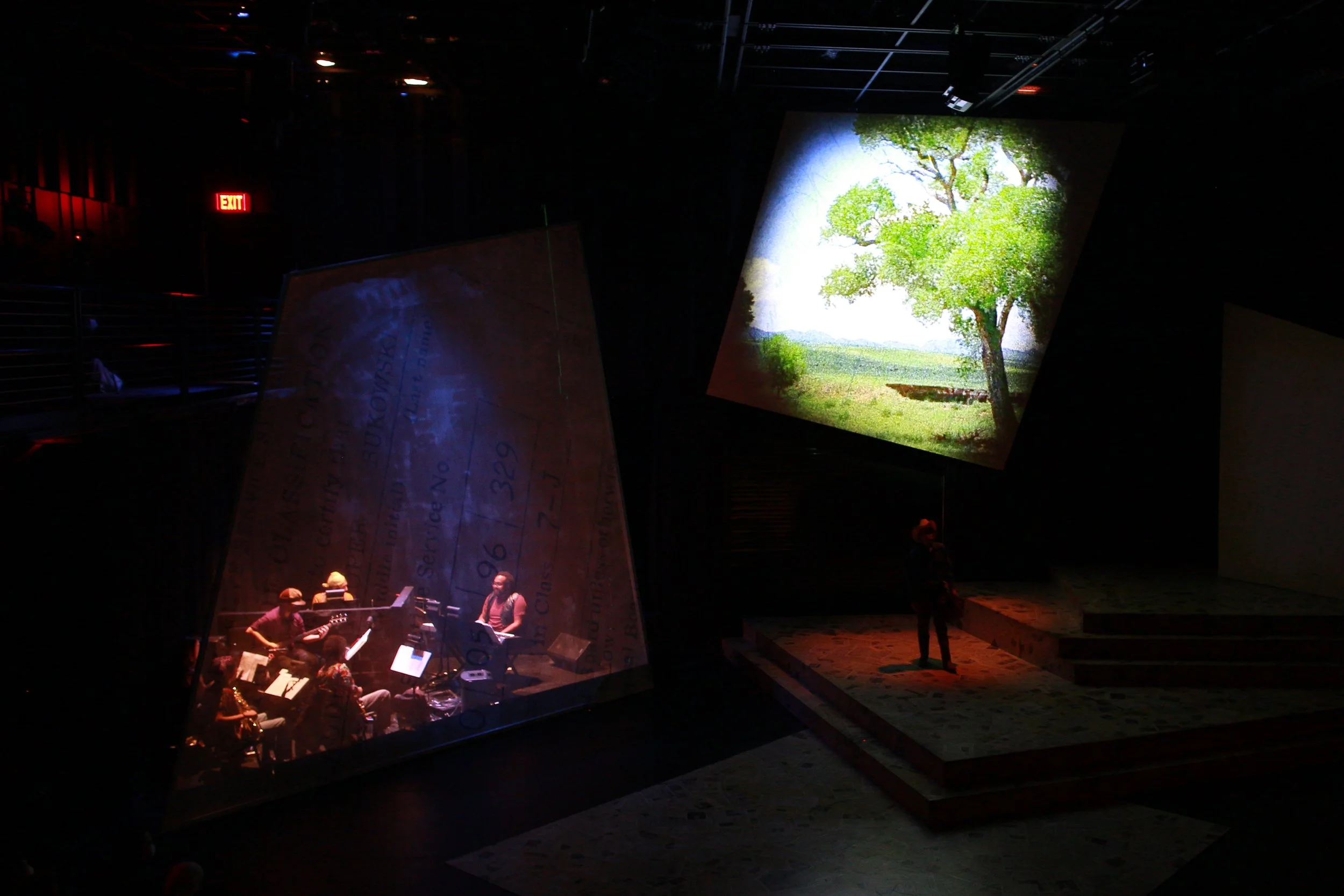 From the beginning, there was the decision to incorporate projection as part of the production, so the design of the set was based greatly on providing sufficient and good-quality projection surfaces.