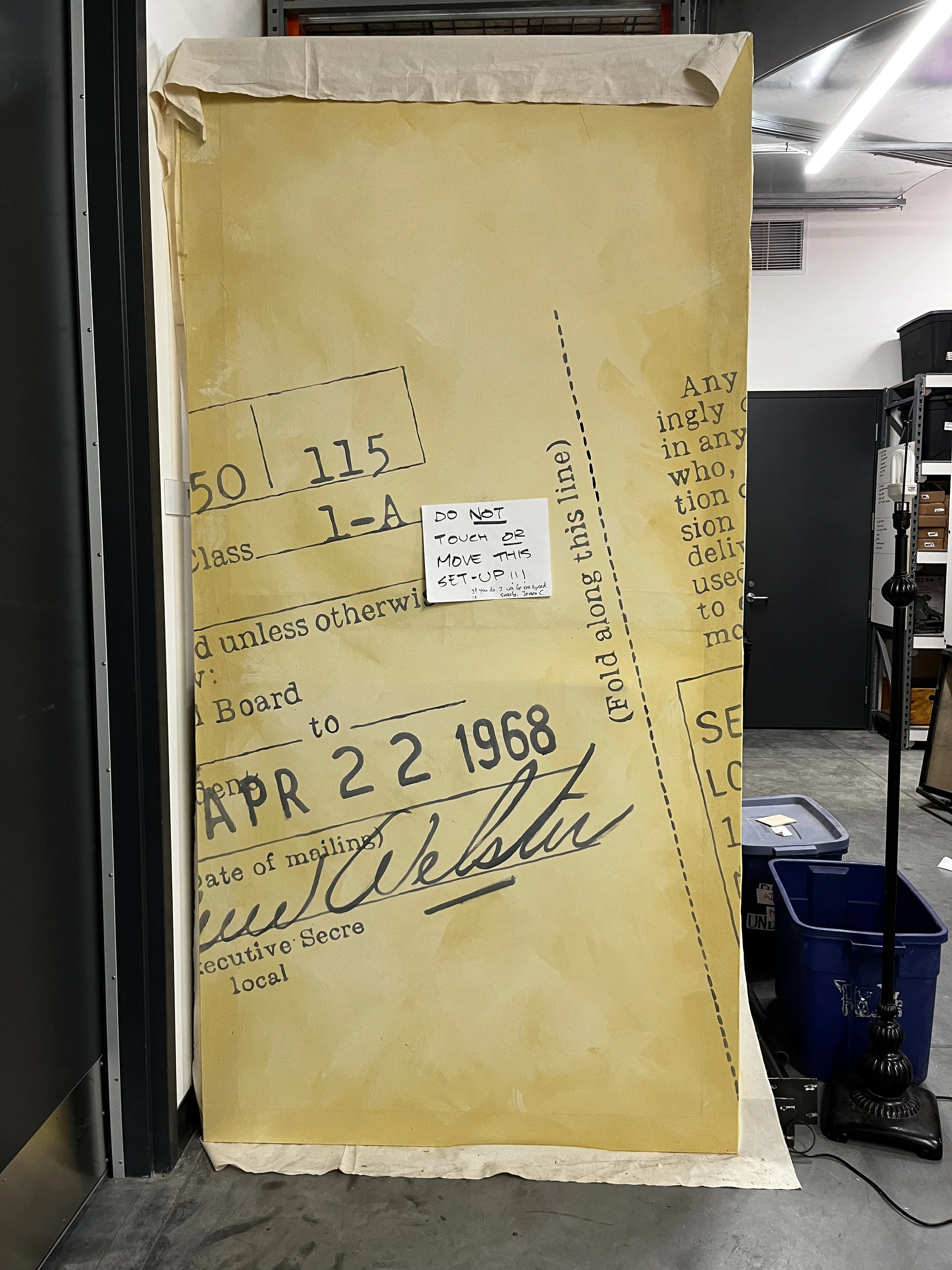 The director’s vision of the production focused on grounding the characters more in the historical reality while showcasing their flower power. To realize such vision, I decided to set the musical in an abstract place surrounded by draft cards of the soldiers who were being sent to the Vietnam War. The giant draft cards serve as a constant reminder of the grim truth the characters are facing. They are purposefully designed to never fade away entirely under the projections to embody the risks the young adults faced during the era.